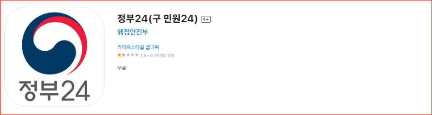 1. 모바일 스토어에서 정부 24 앱을 설치합니다.