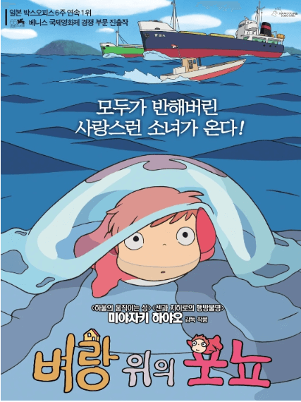 인간의 얼굴을 한 물고기 포뇨가 인간 세계로 나오기 위해 수중 집에서 탈출하면서 이야기는 시작됩니다. 유리병에 갇힌 그녀는 바다가 내려다보이는 절벽 위의 집에서 엄마 리사와 함께 살고 있는 다섯 살 소년 소스케에게 구조되죠. 소스케는 물고기에게 포뇨라는 이름을 지어주고 보살피며 강한 유대감을 형성합니다.