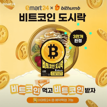 '비트코인 도시락'은 편의점 이마트24가 가상자산 거래소 빗썸과 손잡고 출시한 상품입니다.